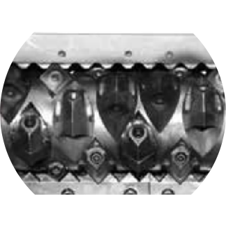 此刀輥是針對ABS.PC.尼龍等堅硬材料進(jìn)行特殊設(shè)計。刀具沉入較深,單次切料較少,減少沖擊,同時降低噪音。